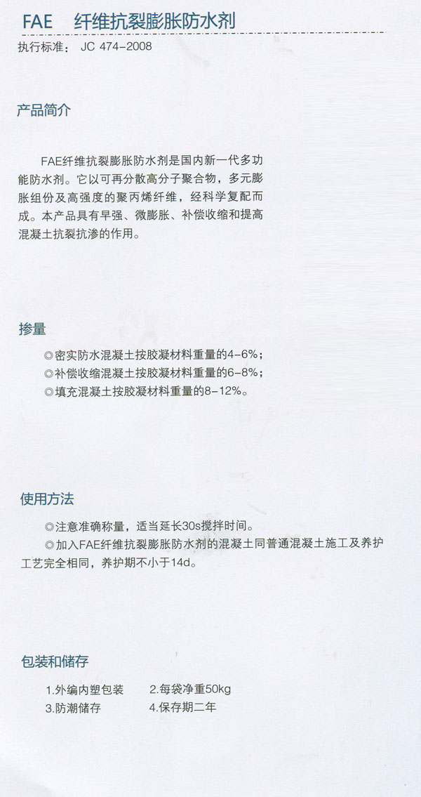 FAE纖維抗裂膨脹防水劑